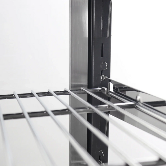 Features & Specifications: Rear swing open doors Double swing open doors accommodate large pan sizes Includes mechanical thermostat & thermometer 2 adjustable chrome plated shelves Slanted shelves to provide a better view to customers Beautiful interior and top LED lighting ...Regular price $825.00Regular price $825.00 -